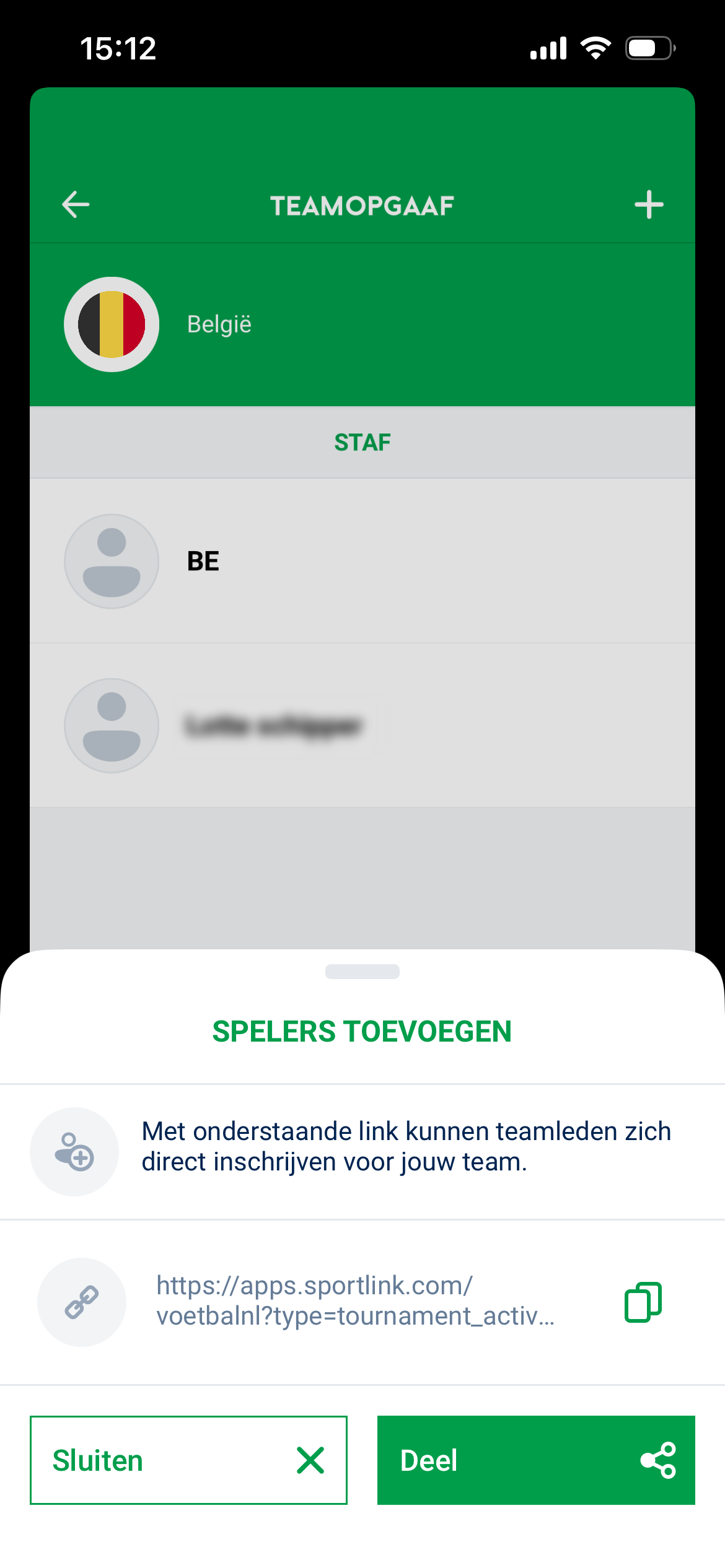 Kopieer de link en deel deze met je spelers via bijvoorbeeld WhatsApp of e‑mail
